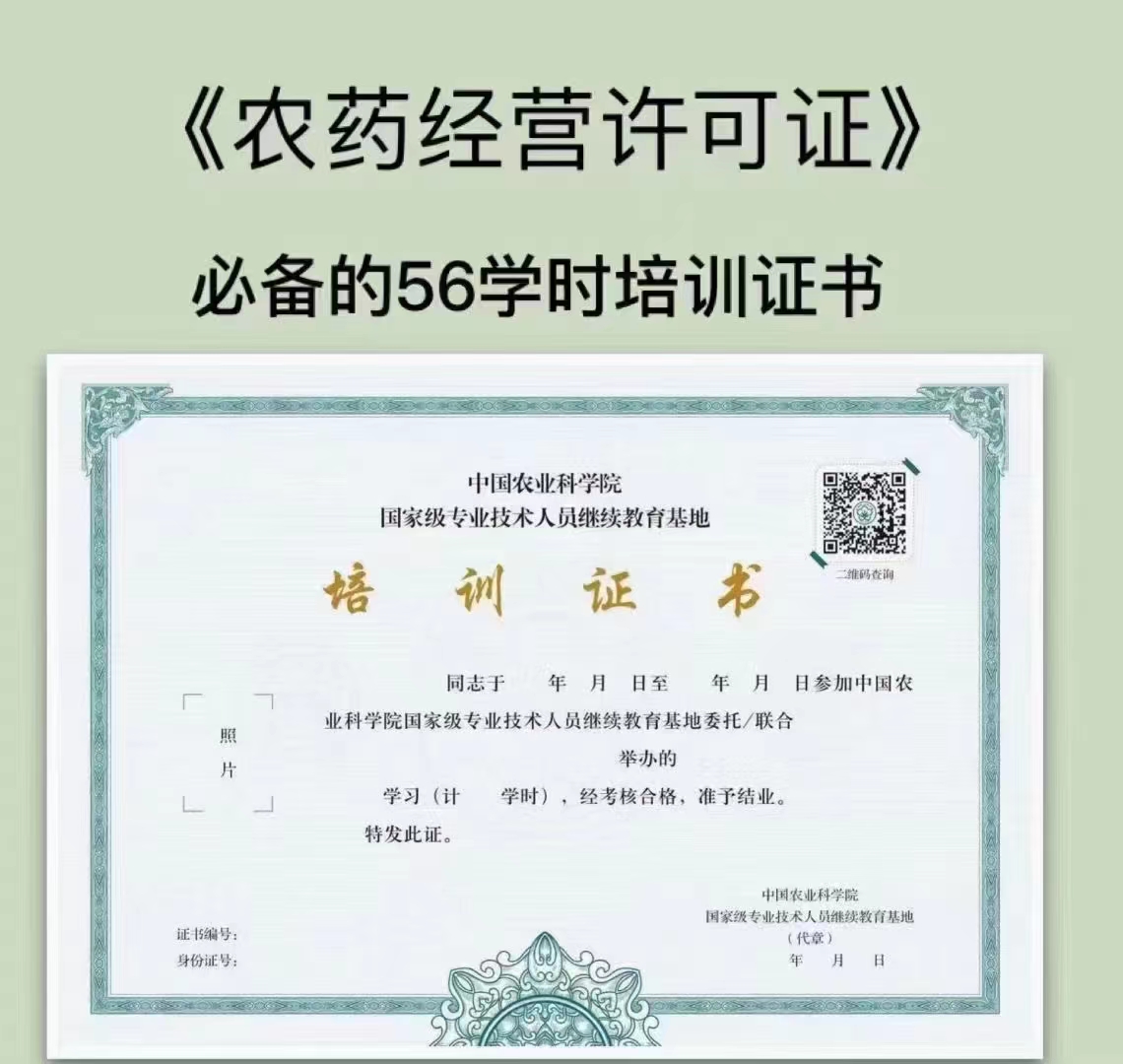 二.开农药店,农药经营人员资质培训56学时,农药经营人员培训合格证书,全国通用,农药店必备。