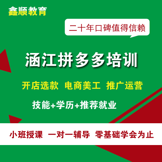 莆田涵江拼多多培训,由涵江鑫顺电商培训提供,开设课程有亚马 逊外贸培训、淘宝运营培训、电商美工培训、拼多多培训、天猫阿里巴巴培训、速卖通跨境电商等专业课程;另有电脑培训、会计培训课程!
