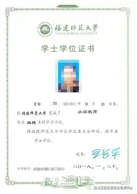 毕业证书:取得学籍的学生,修完教学计划规定的全部课程,成绩合格,颁发福建师范大学成人高等教育本科毕业证书。
