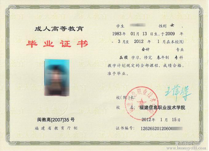 凡参加全国成人高考统一招生考试,并达到招生录取线,录取到福建信息技术学院的学生,修完全部课程,由学院颁发国家教育部统一印制的普通高等院校毕业证书,教育部统一电子注册,国家承认其学历。
